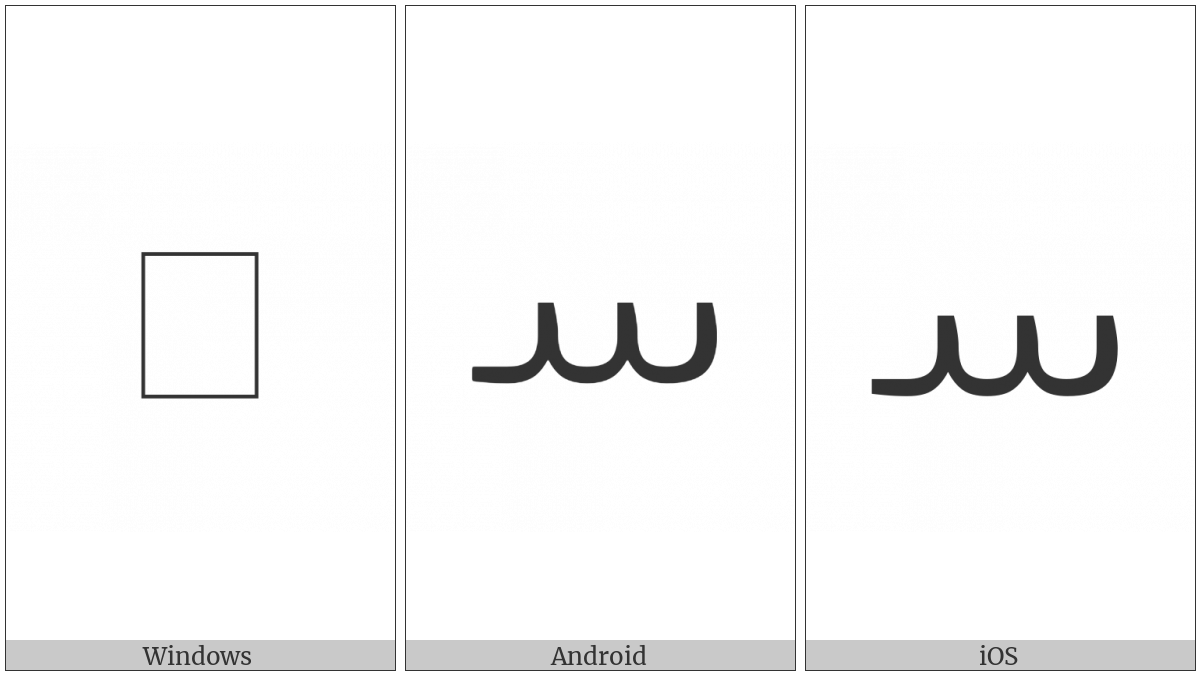 The image below shows how the “Avestan Letter Aa” symbol might look like on different operating systems. If the font in which this web site is displayed does not contain the symbol and there is no fallback font able to render it, you can use the image below to get an idea of what it should look like.
