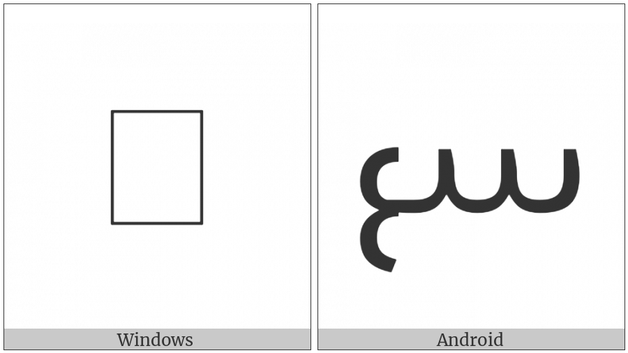 The image below shows how the “Avestan Letter Aao” symbol might look like on different operating systems. If the font in which this web site is displayed does not contain the symbol and there is no fallback font able to render it, you can use the image below to get an idea of what it should look like.
