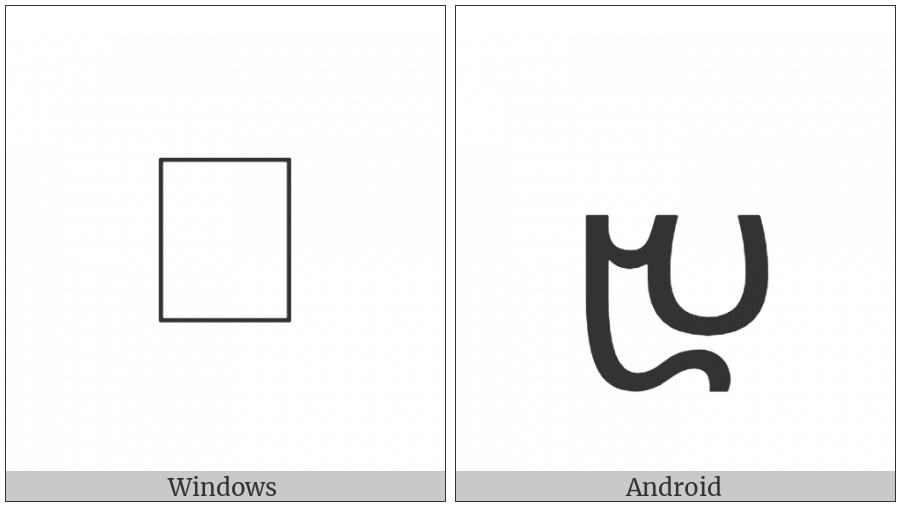 The image below shows how the “Avestan Letter Ee” symbol might look like on different operating systems. If the font in which this web site is displayed does not contain the symbol and there is no fallback font able to render it, you can use the image below to get an idea of what it should look like.