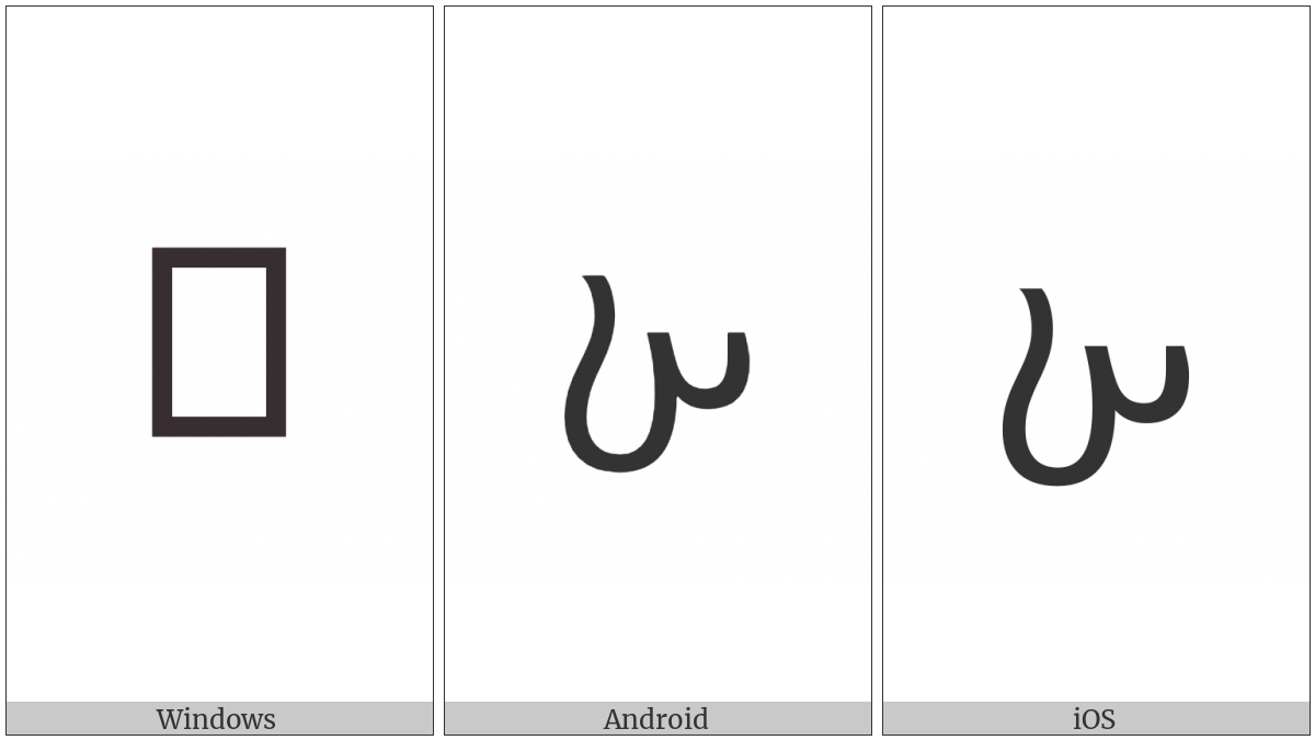 The image below shows how the “Avestan Letter Xe” symbol might look like on different operating systems. If the font in which this web site is displayed does not contain the symbol and there is no fallback font able to render it, you can use the image below to get an idea of what it should look like.