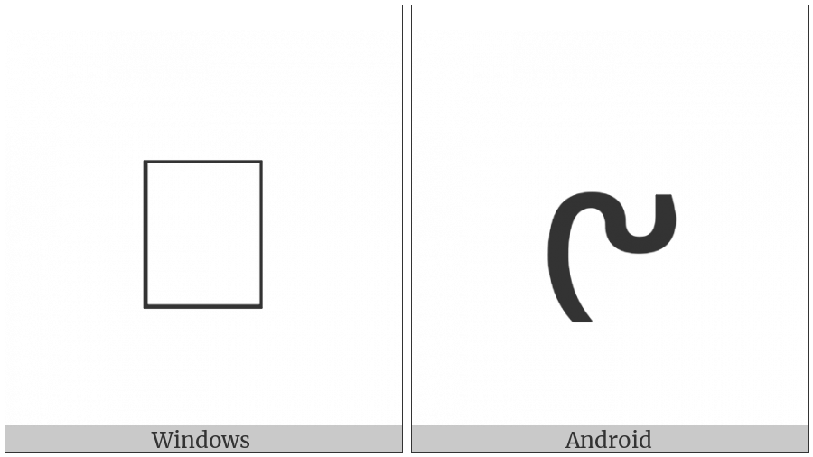 The image below shows how the “Avestan Letter Ge” symbol might look like on different operating systems. If the font in which this web site is displayed does not contain the symbol and there is no fallback font able to render it, you can use the image below to get an idea of what it should look like.