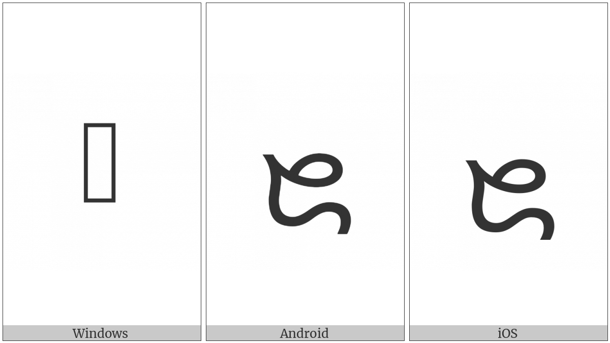The image below shows how the “Avestan Letter Tte” symbol might look like on different operating systems. If the font in which this web site is displayed does not contain the symbol and there is no fallback font able to render it, you can use the image below to get an idea of what it should look like.
