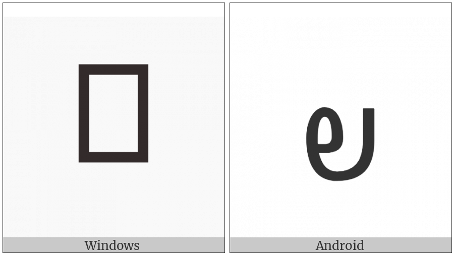 The image below shows how the “Avestan Letter Pe” symbol might look like on different operating systems. If the font in which this web site is displayed does not contain the symbol and there is no fallback font able to render it, you can use the image below to get an idea of what it should look like.