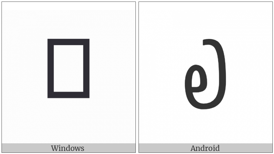 The image below shows how the “Avestan Letter Fe” symbol might look like on different operating systems. If the font in which this web site is displayed does not contain the symbol and there is no fallback font able to render it, you can use the image below to get an idea of what it should look like.