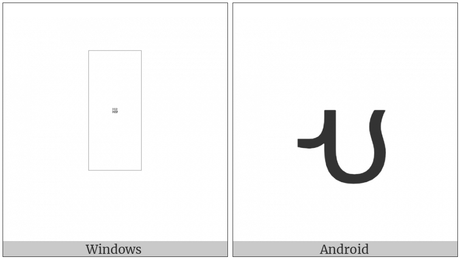 The image below shows how the “Avestan Letter Ngye” symbol might look like on different operating systems. If the font in which this web site is displayed does not contain the symbol and there is no fallback font able to render it, you can use the image below to get an idea of what it should look like.