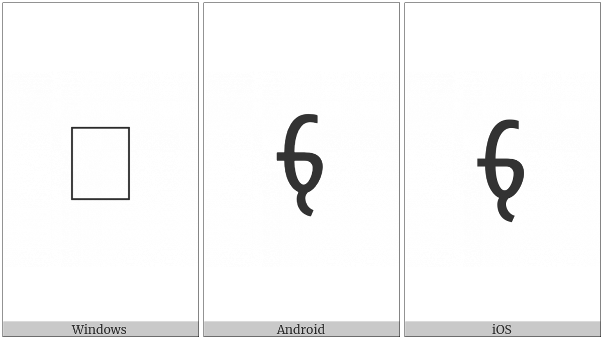 The image below shows how the “Avestan Letter Hme” symbol might look like on different operating systems. If the font in which this web site is displayed does not contain the symbol and there is no fallback font able to render it, you can use the image below to get an idea of what it should look like.