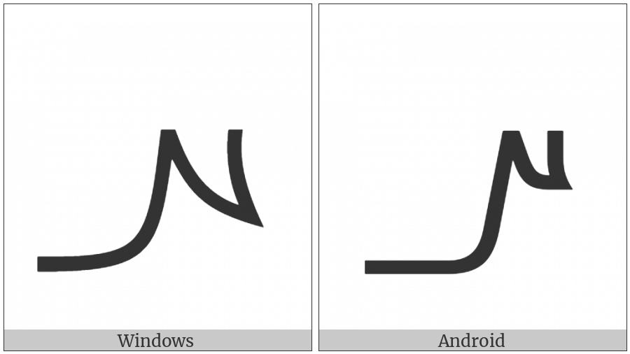 The image below shows how the “Inscriptional Parthian Letter Sadhe” symbol might look like on different operating systems. If the font in which this web site is displayed does not contain the symbol and there is no fallback font able to render it, you can use the image below to get an idea of what it should look like.