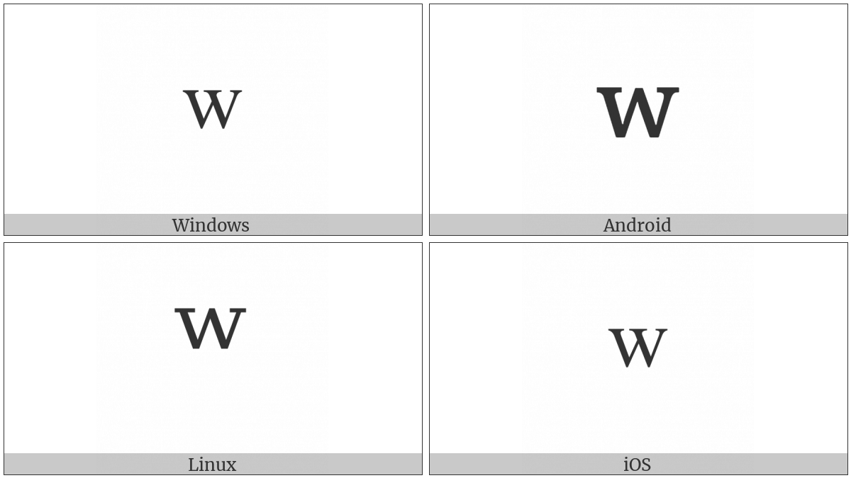 The image below shows how the “Modifier Letter Small W” symbol might look like on different operating systems. If the font in which this web site is displayed does not contain the symbol and there is no fallback font able to render it, you can use the image below to get an idea of what it should look like.