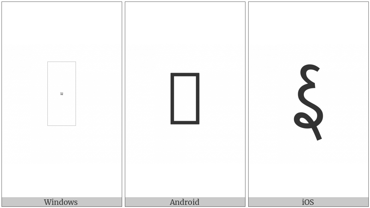 The image below shows how the “Kaithi Letter Ii” symbol might look like on different operating systems. If the font in which this web site is displayed does not contain the symbol and there is no fallback font able to render it, you can use the image below to get an idea of what it should look like.