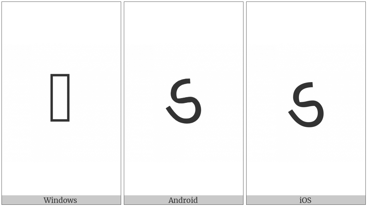 The image below shows how the “Kaithi Letter Dda” symbol might look like on different operating systems. If the font in which this web site is displayed does not contain the symbol and there is no fallback font able to render it, you can use the image below to get an idea of what it should look like.