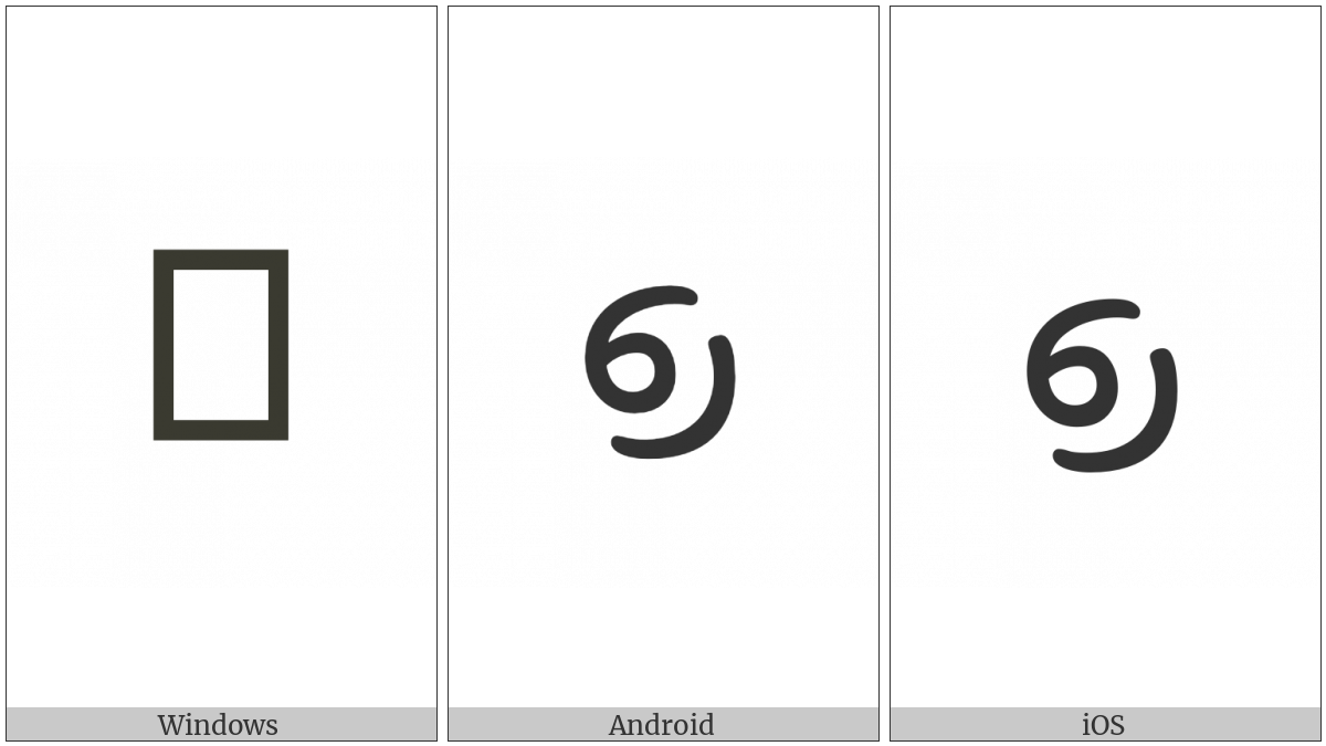 The image below shows how the “Khojki Letter U” symbol might look like on different operating systems. If the font in which this web site is displayed does not contain the symbol and there is no fallback font able to render it, you can use the image below to get an idea of what it should look like.