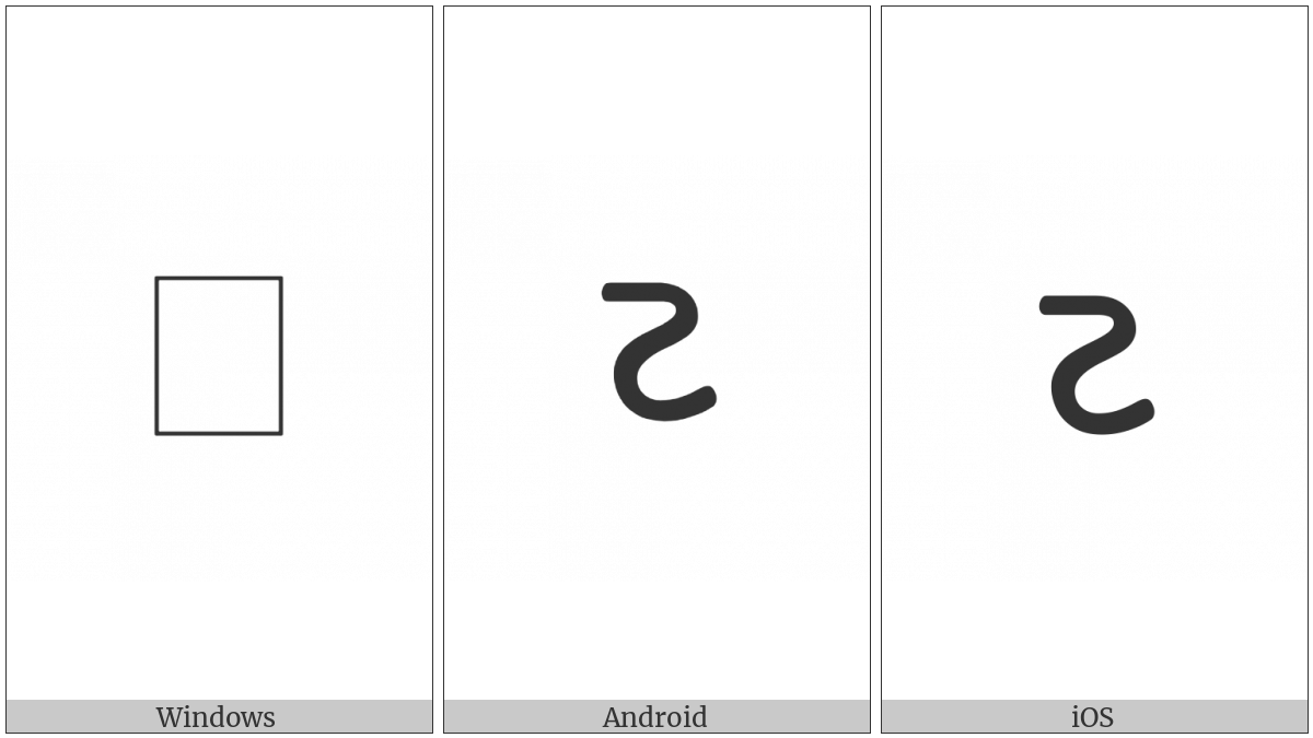 The image below shows how the “Khojki Letter Tta” symbol might look like on different operating systems. If the font in which this web site is displayed does not contain the symbol and there is no fallback font able to render it, you can use the image below to get an idea of what it should look like.