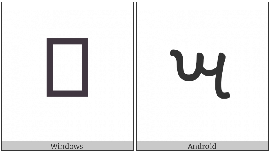 The image below shows how the “Khojki Letter Tha” symbol might look like on different operating systems. If the font in which this web site is displayed does not contain the symbol and there is no fallback font able to render it, you can use the image below to get an idea of what it should look like.