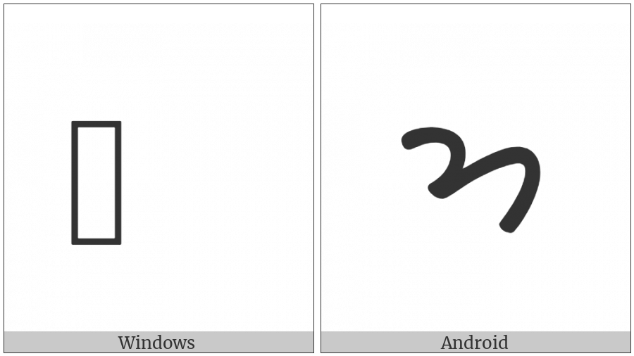 The image below shows how the “Khojki Letter Dha” symbol might look like on different operating systems. If the font in which this web site is displayed does not contain the symbol and there is no fallback font able to render it, you can use the image below to get an idea of what it should look like.