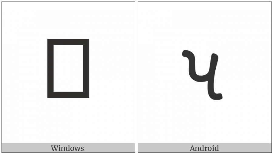 The image below shows how the “Khojki Letter Pa” symbol might look like on different operating systems. If the font in which this web site is displayed does not contain the symbol and there is no fallback font able to render it, you can use the image below to get an idea of what it should look like.