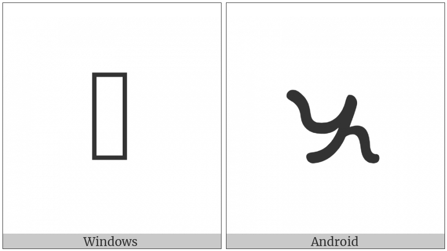The image below shows how the “Khojki Letter Pha” symbol might look like on different operating systems. If the font in which this web site is displayed does not contain the symbol and there is no fallback font able to render it, you can use the image below to get an idea of what it should look like.