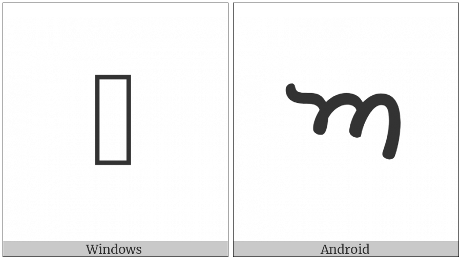 The image below shows how the “Khojki Letter Ba” symbol might look like on different operating systems. If the font in which this web site is displayed does not contain the symbol and there is no fallback font able to render it, you can use the image below to get an idea of what it should look like.