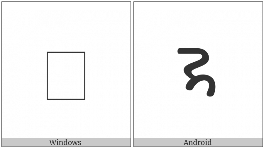 The image below shows how the “Khojki Letter Ha” symbol might look like on different operating systems. If the font in which this web site is displayed does not contain the symbol and there is no fallback font able to render it, you can use the image below to get an idea of what it should look like.
