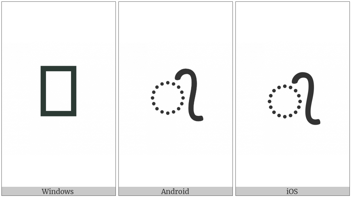 The image below shows how the “Khojki Vowel Sign Ii” symbol might look like on different operating systems. If the font in which this web site is displayed does not contain the symbol and there is no fallback font able to render it, you can use the image below to get an idea of what it should look like.