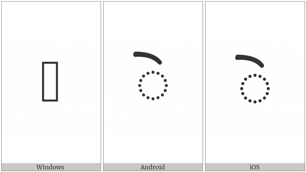 The image below shows how the “Khojki Vowel Sign E” symbol might look like on different operating systems. If the font in which this web site is displayed does not contain the symbol and there is no fallback font able to render it, you can use the image below to get an idea of what it should look like.