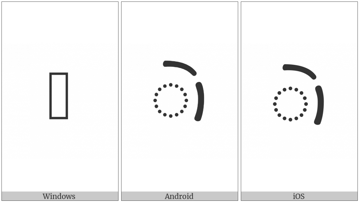 The image below shows how the “Khojki Vowel Sign O” symbol might look like on different operating systems. If the font in which this web site is displayed does not contain the symbol and there is no fallback font able to render it, you can use the image below to get an idea of what it should look like.