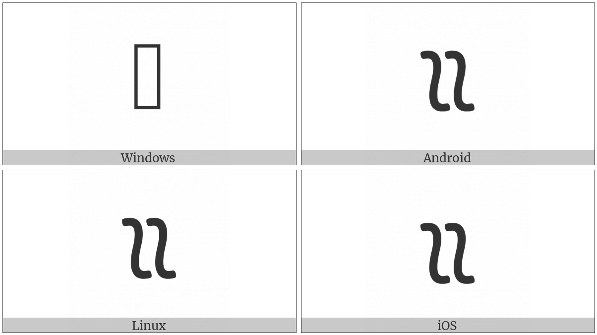 The image below shows how the “Khojki Double Danda” symbol might look like on different operating systems. If the font in which this web site is displayed does not contain the symbol and there is no fallback font able to render it, you can use the image below to get an idea of what it should look like.