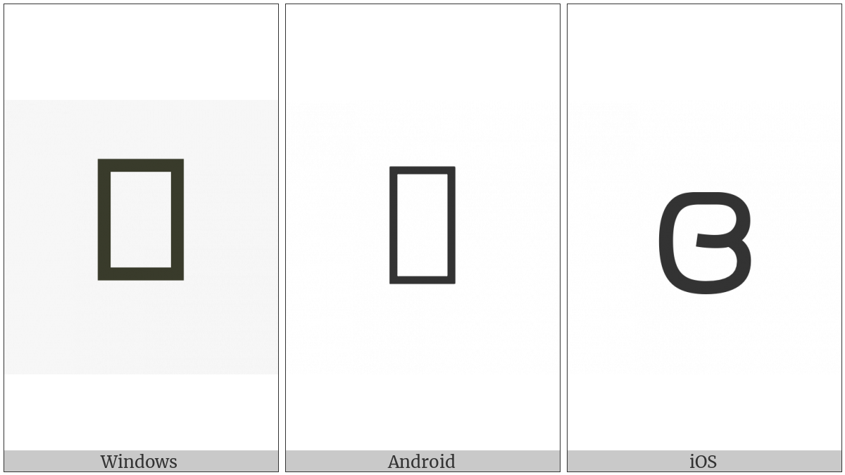 The image below shows how the “Khudawadi Letter U” symbol might look like on different operating systems. If the font in which this web site is displayed does not contain the symbol and there is no fallback font able to render it, you can use the image below to get an idea of what it should look like.