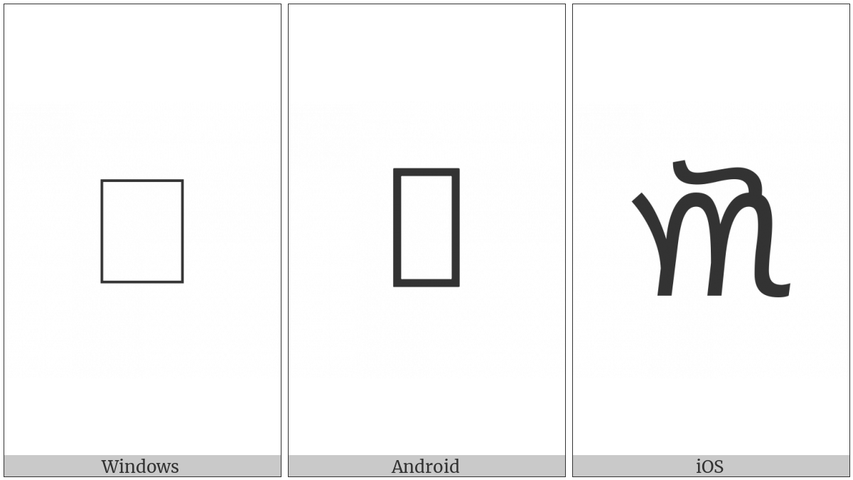 The image below shows how the “Khudawadi Letter O” symbol might look like on different operating systems. If the font in which this web site is displayed does not contain the symbol and there is no fallback font able to render it, you can use the image below to get an idea of what it should look like.