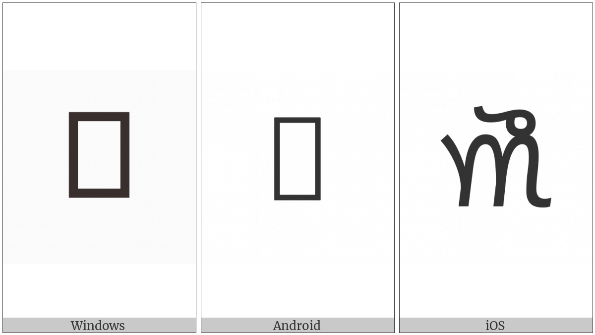 The image below shows how the “Khudawadi Letter Au” symbol might look like on different operating systems. If the font in which this web site is displayed does not contain the symbol and there is no fallback font able to render it, you can use the image below to get an idea of what it should look like.