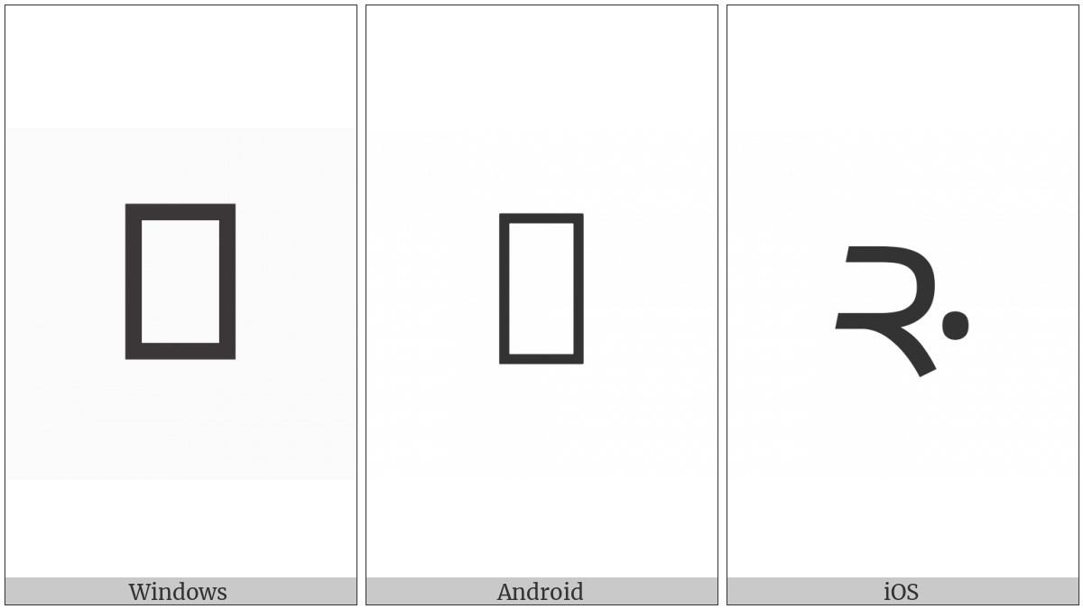 The image below shows how the “Khudawadi Letter Nga” symbol might look like on different operating systems. If the font in which this web site is displayed does not contain the symbol and there is no fallback font able to render it, you can use the image below to get an idea of what it should look like.