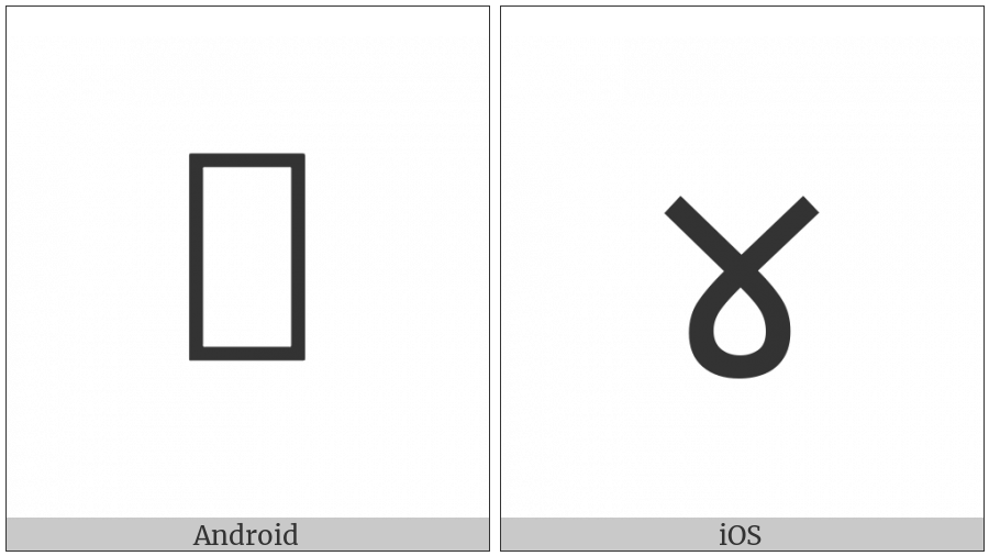The image below shows how the “Khudawadi Letter Ca” symbol might look like on different operating systems. If the font in which this web site is displayed does not contain the symbol and there is no fallback font able to render it, you can use the image below to get an idea of what it should look like.