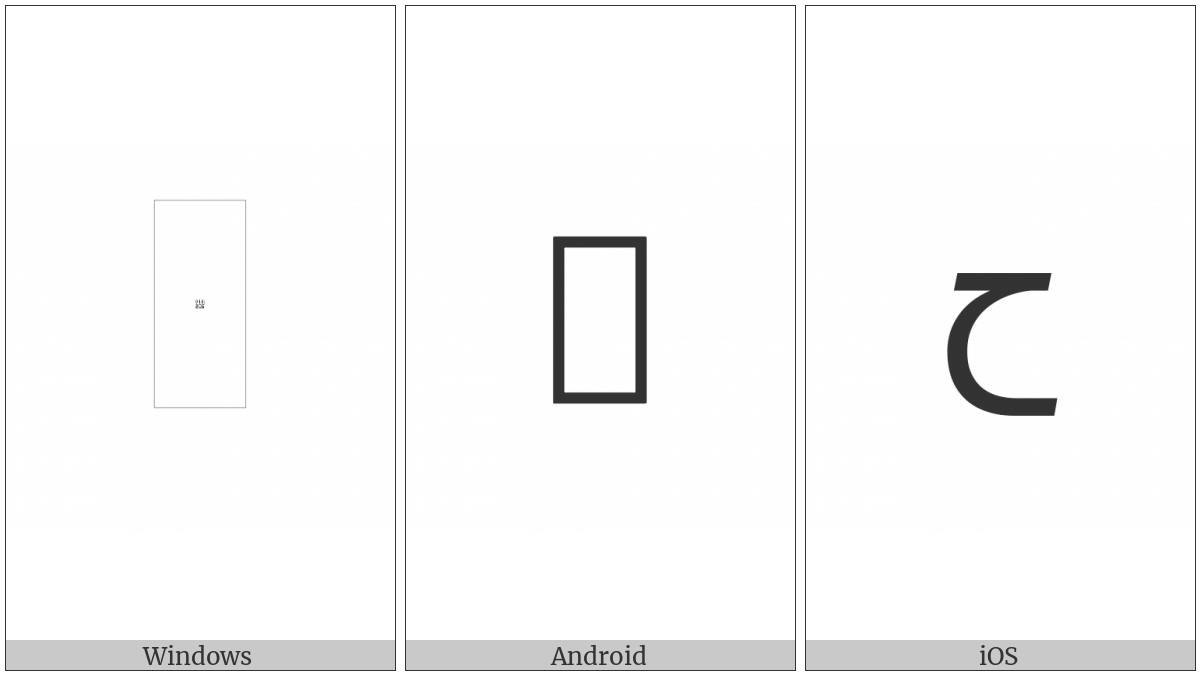 The image below shows how the “Khudawadi Letter Tta” symbol might look like on different operating systems. If the font in which this web site is displayed does not contain the symbol and there is no fallback font able to render it, you can use the image below to get an idea of what it should look like.