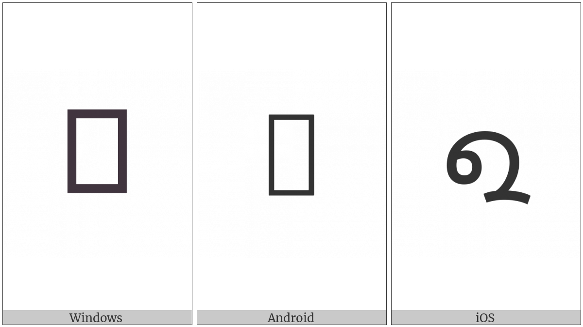 The image below shows how the “Khudawadi Letter Da” symbol might look like on different operating systems. If the font in which this web site is displayed does not contain the symbol and there is no fallback font able to render it, you can use the image below to get an idea of what it should look like.