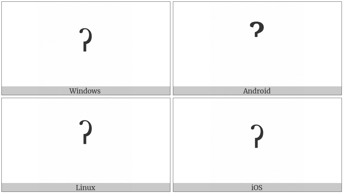 The image below shows how the “Modifier Letter Glottal Stop” symbol might look like on different operating systems. If the font in which this web site is displayed does not contain the symbol and there is no fallback font able to render it, you can use the image below to get an idea of what it should look like.