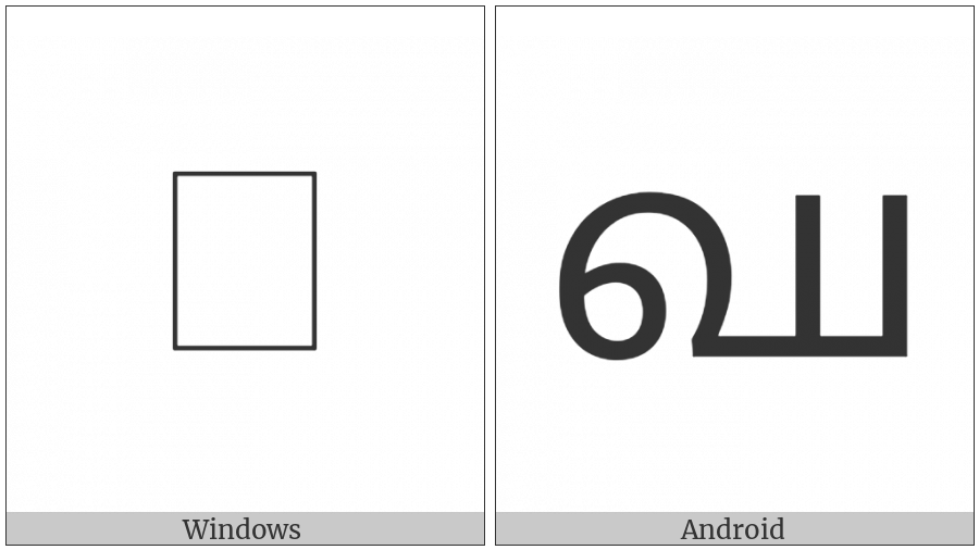 The image below shows how the “Grantha Letter Gha” symbol might look like on different operating systems. If the font in which this web site is displayed does not contain the symbol and there is no fallback font able to render it, you can use the image below to get an idea of what it should look like.