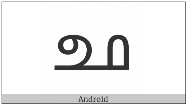 The image below shows how the “Grantha Letter Cha” symbol might look like on different operating systems. If the font in which this web site is displayed does not contain the symbol and there is no fallback font able to render it, you can use the image below to get an idea of what it should look like.