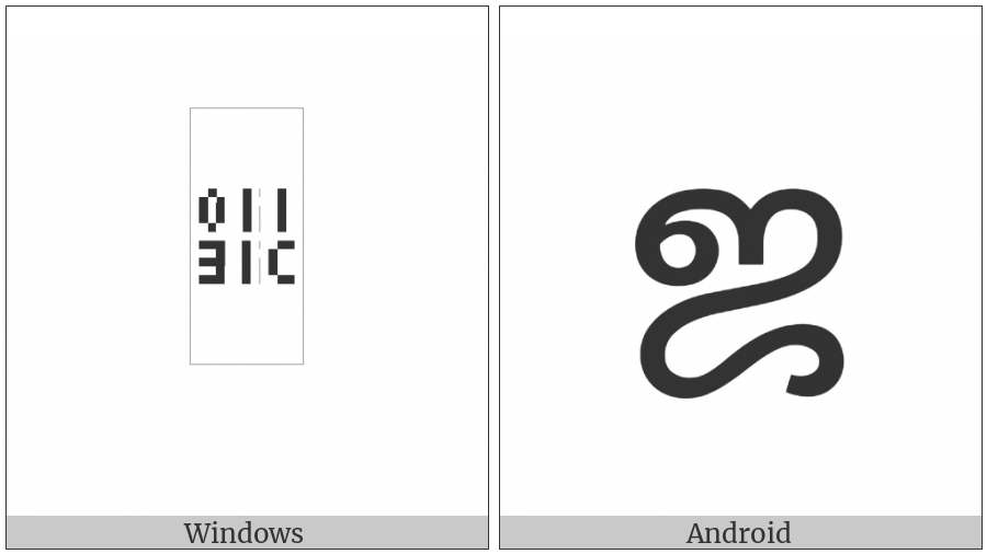 The image below shows how the “Grantha Letter Ja” symbol might look like on different operating systems. If the font in which this web site is displayed does not contain the symbol and there is no fallback font able to render it, you can use the image below to get an idea of what it should look like.