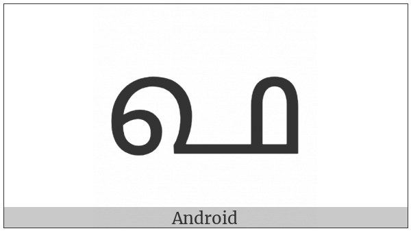 The image below shows how the “Grantha Letter Pha” symbol might look like on different operating systems. If the font in which this web site is displayed does not contain the symbol and there is no fallback font able to render it, you can use the image below to get an idea of what it should look like.