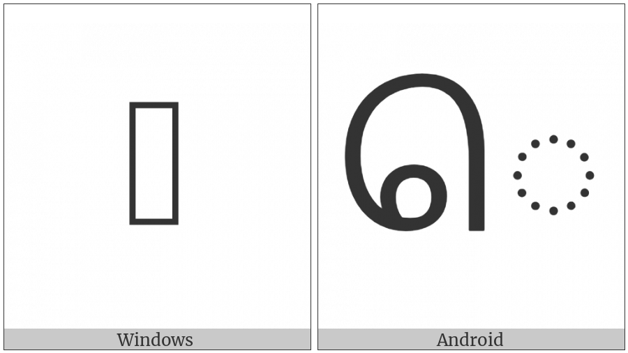 The image below shows how the “Grantha Vowel Sign Ee” symbol might look like on different operating systems. If the font in which this web site is displayed does not contain the symbol and there is no fallback font able to render it, you can use the image below to get an idea of what it should look like.