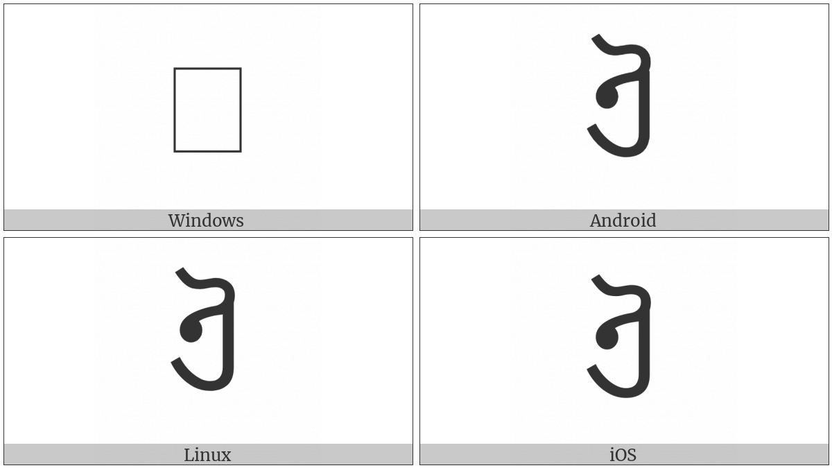 The image below shows how the “Newa Letter Ai” symbol might look like on different operating systems. If the font in which this web site is displayed does not contain the symbol and there is no fallback font able to render it, you can use the image below to get an idea of what it should look like.
