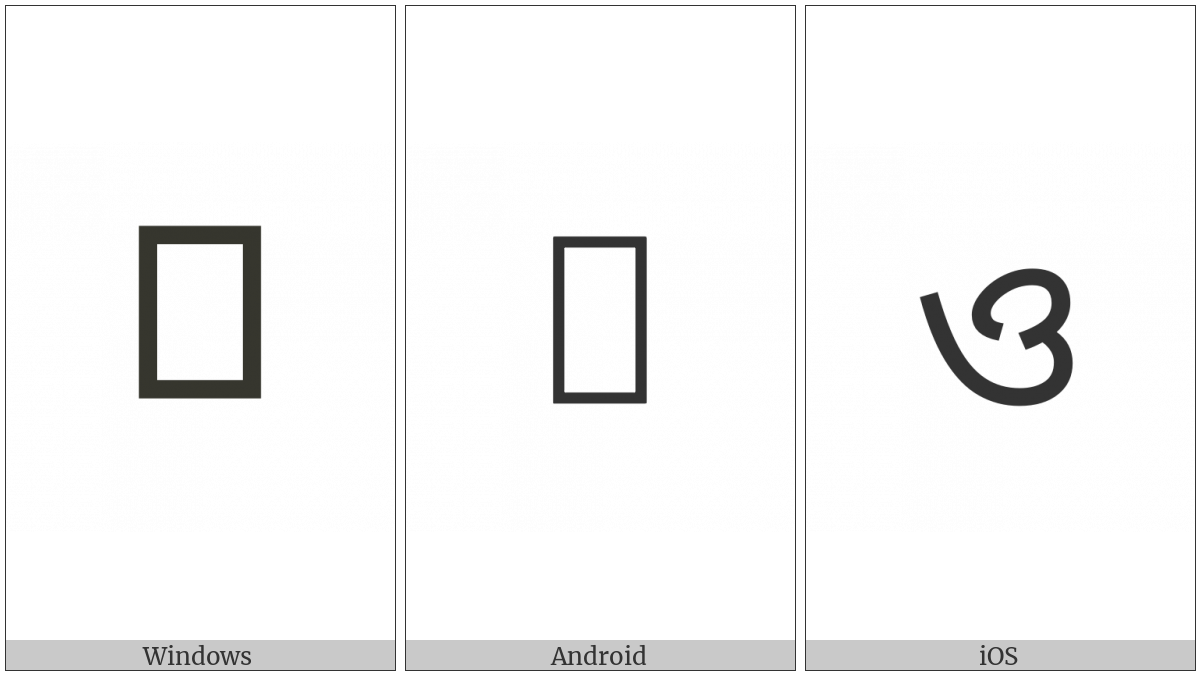 The image below shows how the “Tirhuta Letter O” symbol might look like on different operating systems. If the font in which this web site is displayed does not contain the symbol and there is no fallback font able to render it, you can use the image below to get an idea of what it should look like.