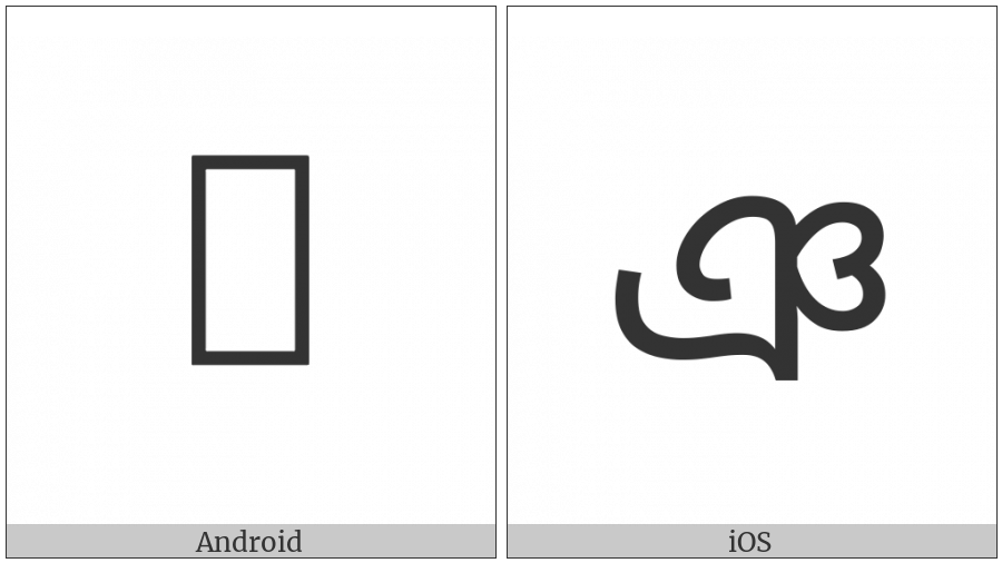 The image below shows how the “Tirhuta Letter Nya” symbol might look like on different operating systems. If the font in which this web site is displayed does not contain the symbol and there is no fallback font able to render it, you can use the image below to get an idea of what it should look like.