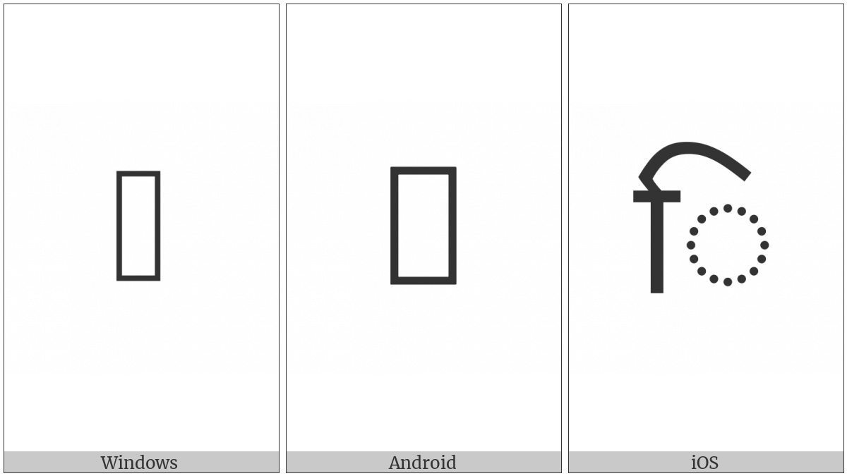 The image below shows how the “Tirhuta Vowel Sign I” symbol might look like on different operating systems. If the font in which this web site is displayed does not contain the symbol and there is no fallback font able to render it, you can use the image below to get an idea of what it should look like.