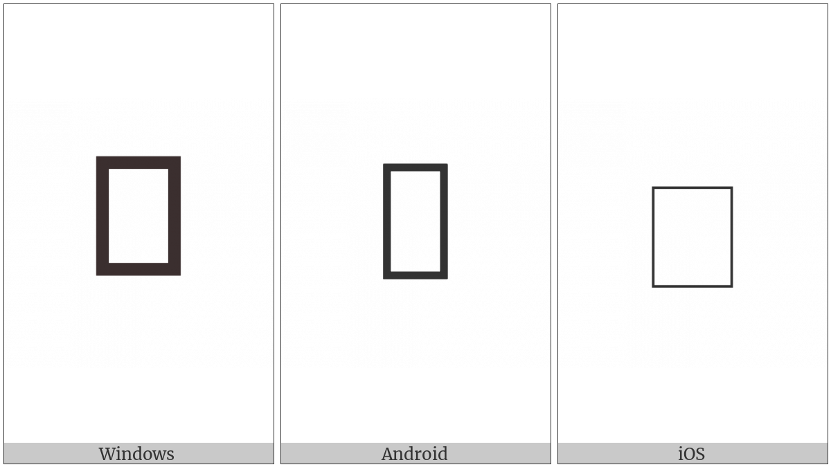 The image below shows how the “Tirhuta Vowel Sign Au” symbol might look like on different operating systems. If the font in which this web site is displayed does not contain the symbol and there is no fallback font able to render it, you can use the image below to get an idea of what it should look like.