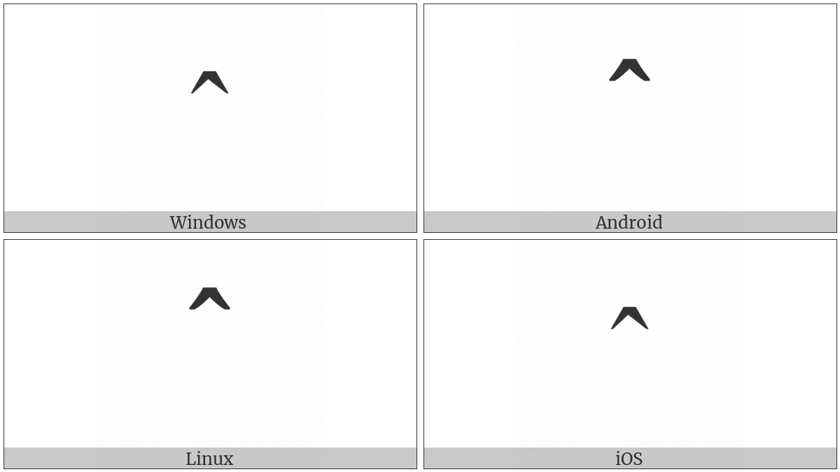 The image below shows how the “Modifier Letter Circumflex Accent” symbol might look like on different operating systems. If the font in which this web site is displayed does not contain the symbol and there is no fallback font able to render it, you can use the image below to get an idea of what it should look like.