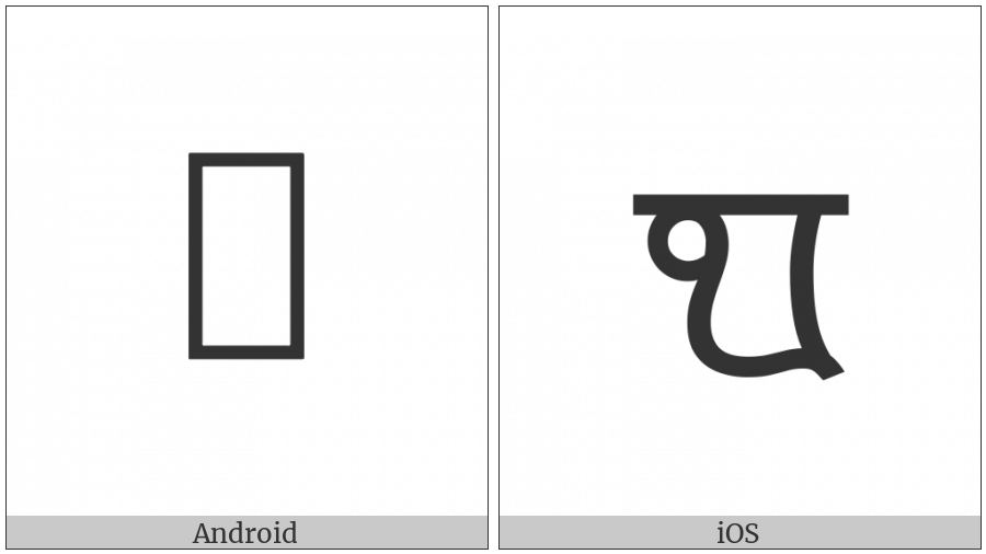 The image below shows how the “Modi Letter Aa” symbol might look like on different operating systems. If the font in which this web site is displayed does not contain the symbol and there is no fallback font able to render it, you can use the image below to get an idea of what it should look like.