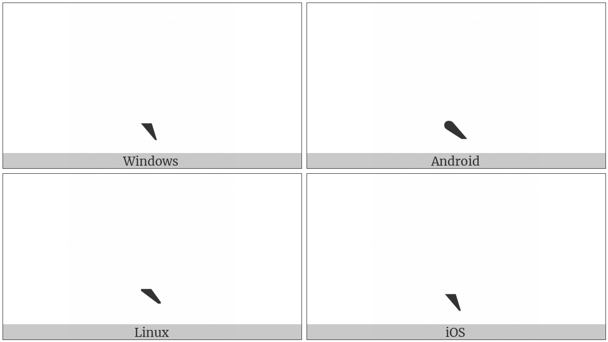 The image below shows how the “Modifier Letter Low Grave Accent” symbol might look like on different operating systems. If the font in which this web site is displayed does not contain the symbol and there is no fallback font able to render it, you can use the image below to get an idea of what it should look like.