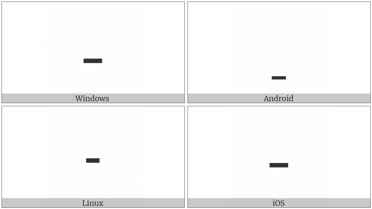 The image below shows how the “Modifier Letter Minus Sign” symbol might look like on different operating systems. If the font in which this web site is displayed does not contain the symbol and there is no fallback font able to render it, you can use the image below to get an idea of what it should look like.