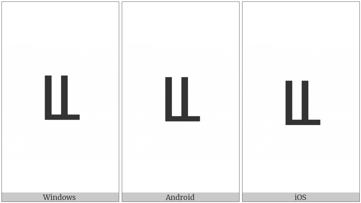 The image below shows how the “Masaram Gondi Letter Ai” symbol might look like on different operating systems. If the font in which this web site is displayed does not contain the symbol and there is no fallback font able to render it, you can use the image below to get an idea of what it should look like.