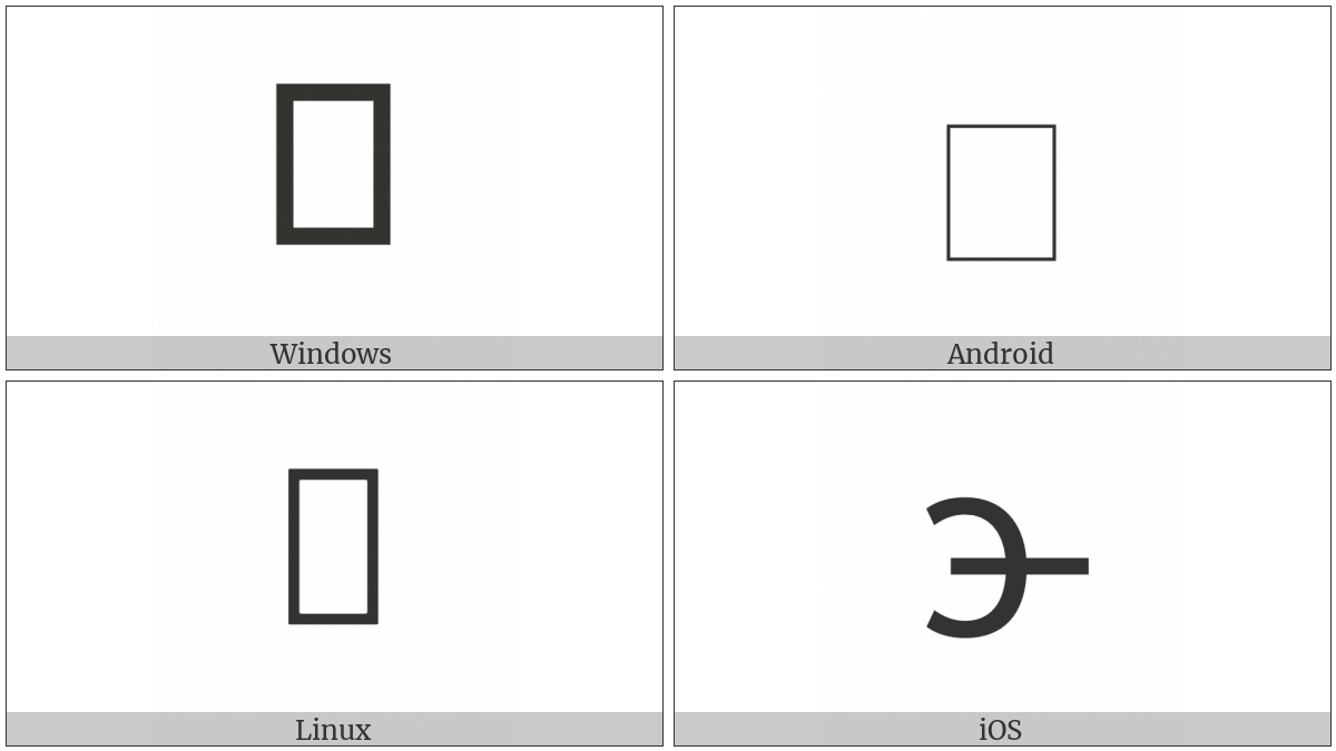 The image below shows how the “Masaram Gondi Letter Cha” symbol might look like on different operating systems. If the font in which this web site is displayed does not contain the symbol and there is no fallback font able to render it, you can use the image below to get an idea of what it should look like.